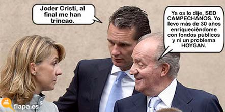 No sé quién ha escrito el diálogo de la foto del Rey con Cristina y Urdangarín, pero escribir HOYGAN por OIGAN no le deja a uno demasiado tranquilo; deben ser cosas de la ESO.