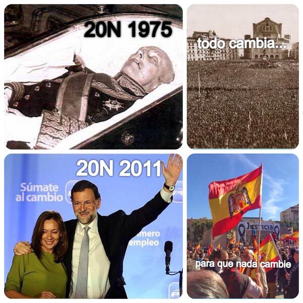 Pero no ha sido así, y el devenir de estos casi cuarenta años desde que el Caudilo la diñó, parece querer devolvernos -con altibajos, quiebros y espejismos varios- a una Historia que creíamos definitivamente superada.