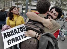 y me he debatido en la ambivalencia de pensar en lo entrañable de la ocurrencia para con tantos que andan necesitados de afecto y, a un tiempo, la intrínseca impostura de ese acto entre desconocidos. Encima, comenta mi mujer, a veces se aprovecha cercanía y distracción para birlar la cartera al abrazado, así que me parece que andamos necesitados de algo distinto y donde no quepa el engaño.