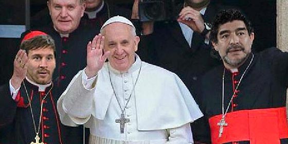 en forma de pajarito como acostumbra últimamente, te sorprende el otro día confraternizando con Bergoglio. Cosas del fútbol, claro. Y de su representante en la tierra, habrías añadido. Por eso, seguramente, lo de las dos potencias, frente a frente, en el Vaticano.