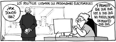 Es curioso que a cada persona le entren con diferentes imágenes las más o menos similares ideas, a mí me sucede a la inversa, cuando veo algún mitin en los que siempre hay ese personal aquiescente con el locutor que van moviendo su cabecita como aquellos perritos que en los ’60 había en muchos coches e iban según el vaivén del coche. Entiendo que de verdad deben de estar todos muy agradecidos a sus respectivos partidos, pues sus miradas obnubiladas,¿ o son esos son los que colocan para ser enfocados por las camaras? dan la imagen de haber entrado en el Nirvana y entonces uno se pregunta ¿ seré yo que no me entero?, pero no, luego miro a mi alrededor y veo la cantidad de familias desplazadas, y otros problemas que por conocidos no enumeraré, y pienso que a esa gente de verdad les falta un toque de realidad.