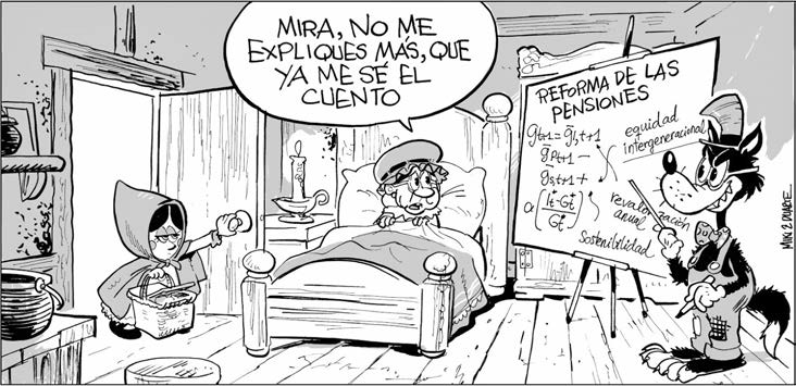 Hay trabajadores en activo que las pasan putas, muy putas. Tienen hijos, hipotecas, impuestos de cojones; necesitan medicamentos y gasoil, coño, para seguir trabajando, y encima les cae encima la losa de la moderación salarial, y que se jodan, mientras que las pensiones parece que tienen que «aumentar», siempre aumentar, por vaporosas razones de «dignidad social». Y entonces me preguntarán ustedes: «¿De verdad crees que el médico jubilado cobra demasiado?» Sí, lo creo. «¿En serio?» Que sí, hombre, que lo creo rotundamente. Que ya son años para tener los deberes hechos y que el dinero, lo que se dice el dinero, tiene que estar donde cunda.