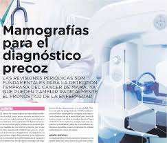 De ahí la importancia de un diagnóstico temprano – precoz –, que posibilita una mayor eficacia terapéutica y se ha demostrado que reduce la mortalidad de las afectadas en alrededor de un 30%. Mejorar el pronóstico y tratar cuanto antes es, en consecuencia, la finalidad del cribado con intención de detectar el cáncer en fases tempranas, y la mamografía es la única técnica de eficacia actualmente reconocida: la práctica de la misma ( anualmente en edades comprendidas entre 45 y 75 años aunque, a partir de los 50, parece ser suficiente la periodicidad bianual) permite detectar de 4 a 7 casos por cada 1000 exámenes realizados y, por tanto, el inicio del tratamiento con mayor posibilidad de definitiva curación por haberse diagnosticado los mismos en estadios iniciales.
